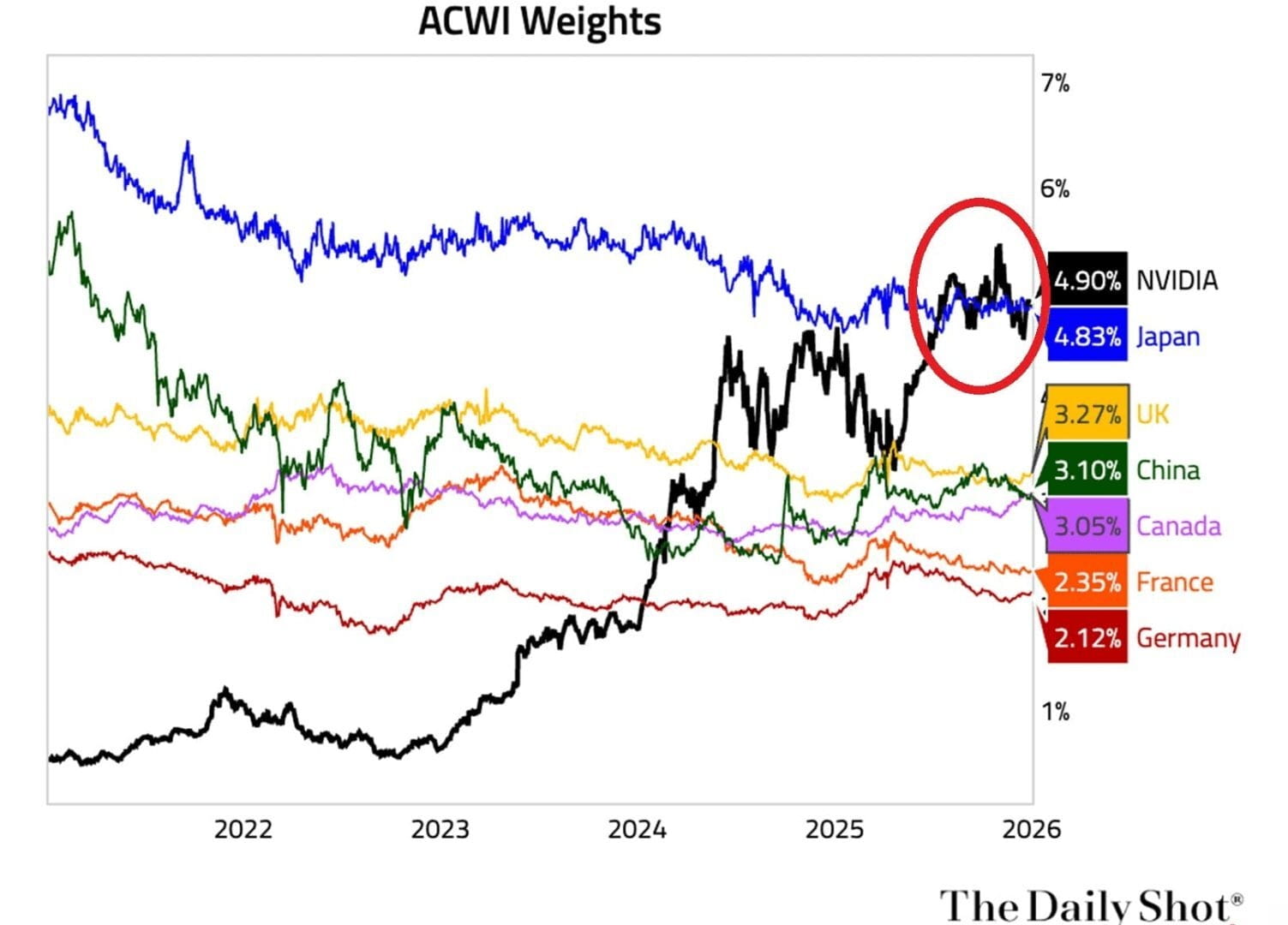 Dentro del índice MSCI All Country World, NVIDIA ahora tiene más importancia que todo el mercado accionario de Japón.