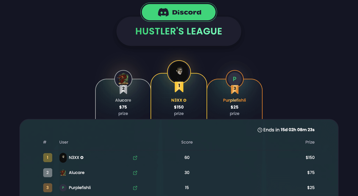 Acabo de ganar $150 en la Liga de Hustlers de Freecash, y la próxima copa ya está activa con un premio de $300.