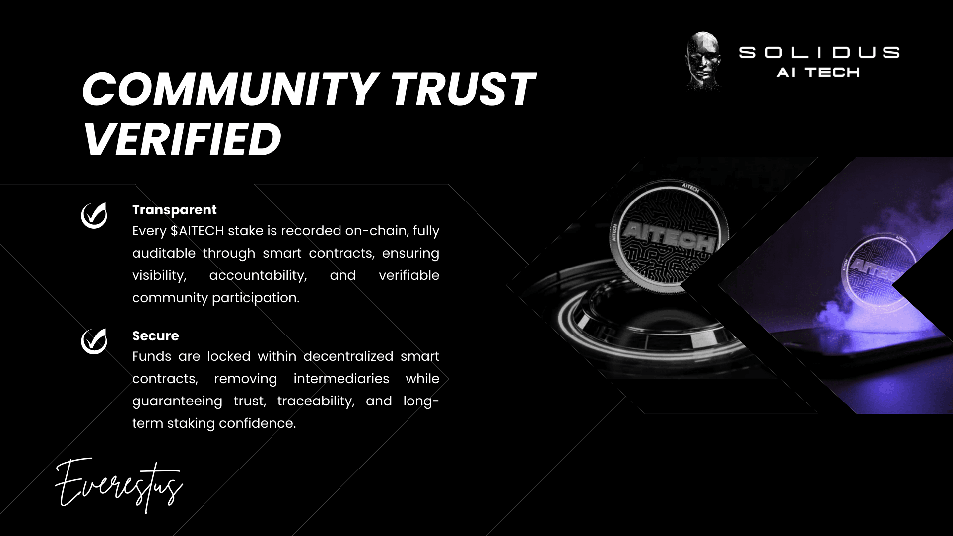 En Web3, la confianza debe ser comprobable. Con AITECH, cada stake está gobernado por contratos inteligibles y registrados de forma transparente en la cadena.