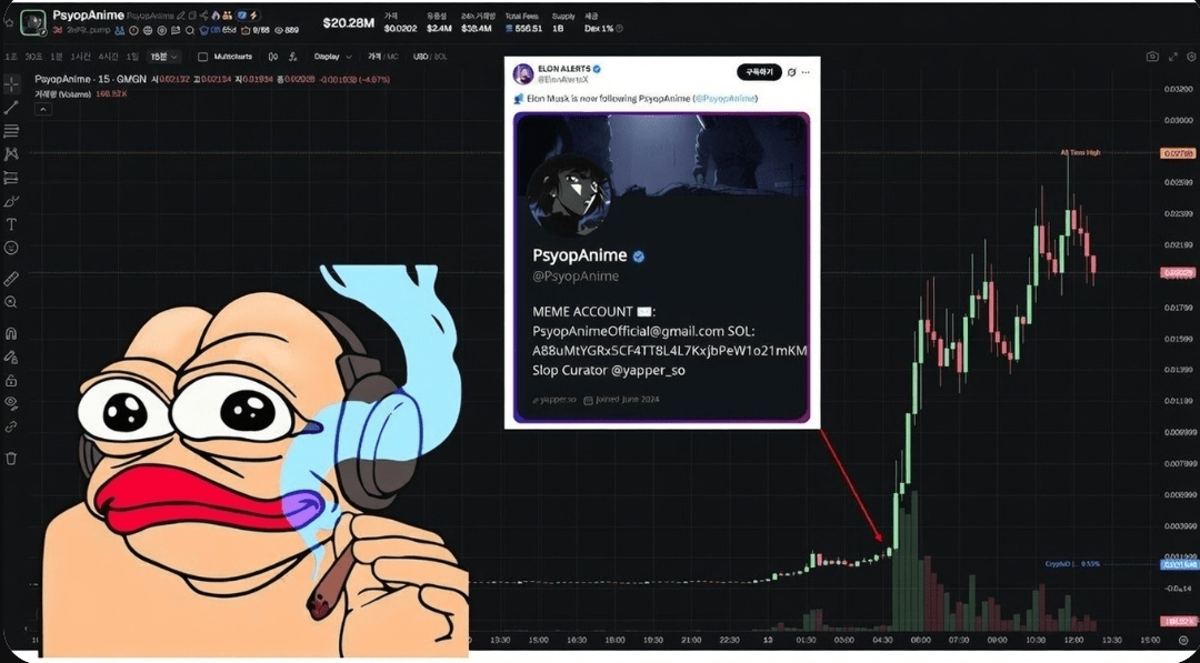 - [Degen] Elon siguió $PSYOPANIME y subió un 4700% hasta los $20 millones