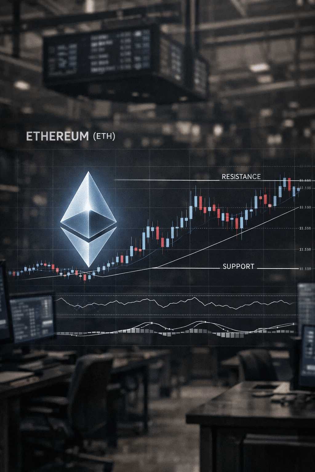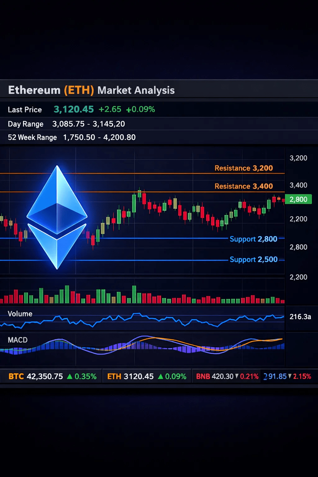 $ETH está manteniendo el soporte clave cerca de ~$3,100–$3,200 mientras se consolida en un mercado estrechamente rango, con analistas señalando señales técnicas que podrían impulsar un movimiento al alza si se rompe la resistencia.