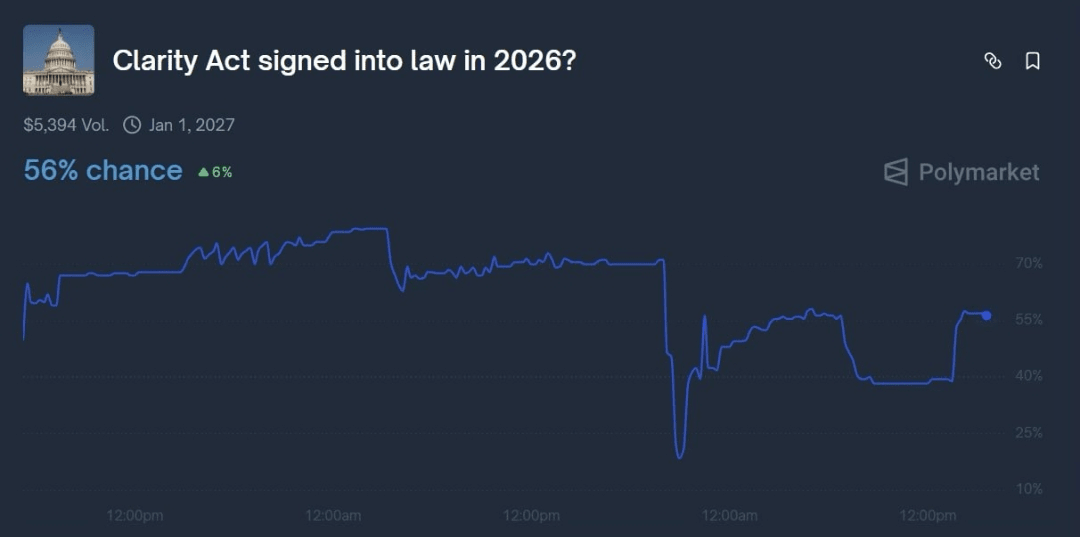 Las estimaciones actuales del mercado dan alrededor de un 56 por ciento de posibilidades de que la Ley de Claridad se convierta en ley este año.