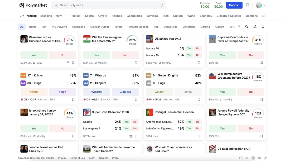 Recordatorio de riesgo: las predicciones tienen incertidumbre, podrías perder todo tu dinero; la plataforma no tiene casas de apuestas, pero los mercados con baja liquidez tienen grandes diferencias de precios.