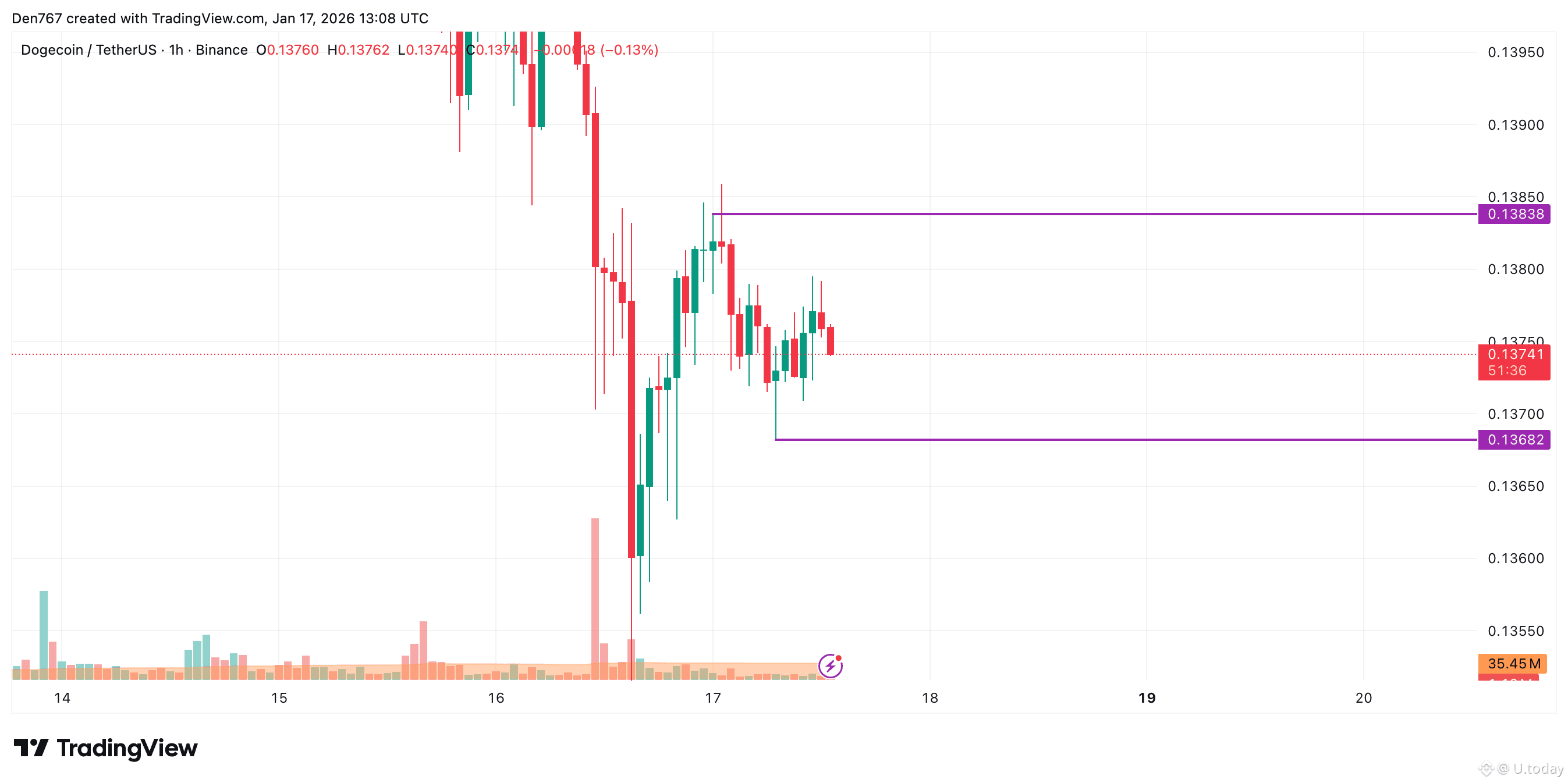 DOGE is trading at $0.1375 at press time.