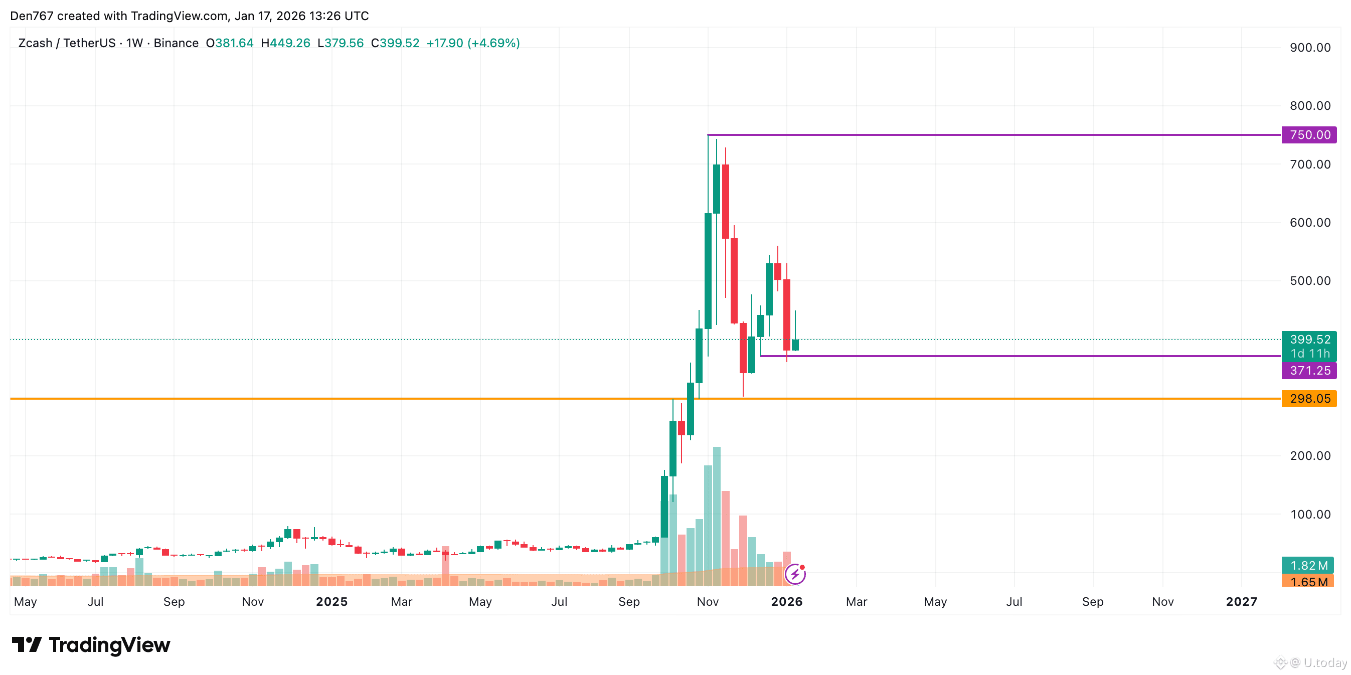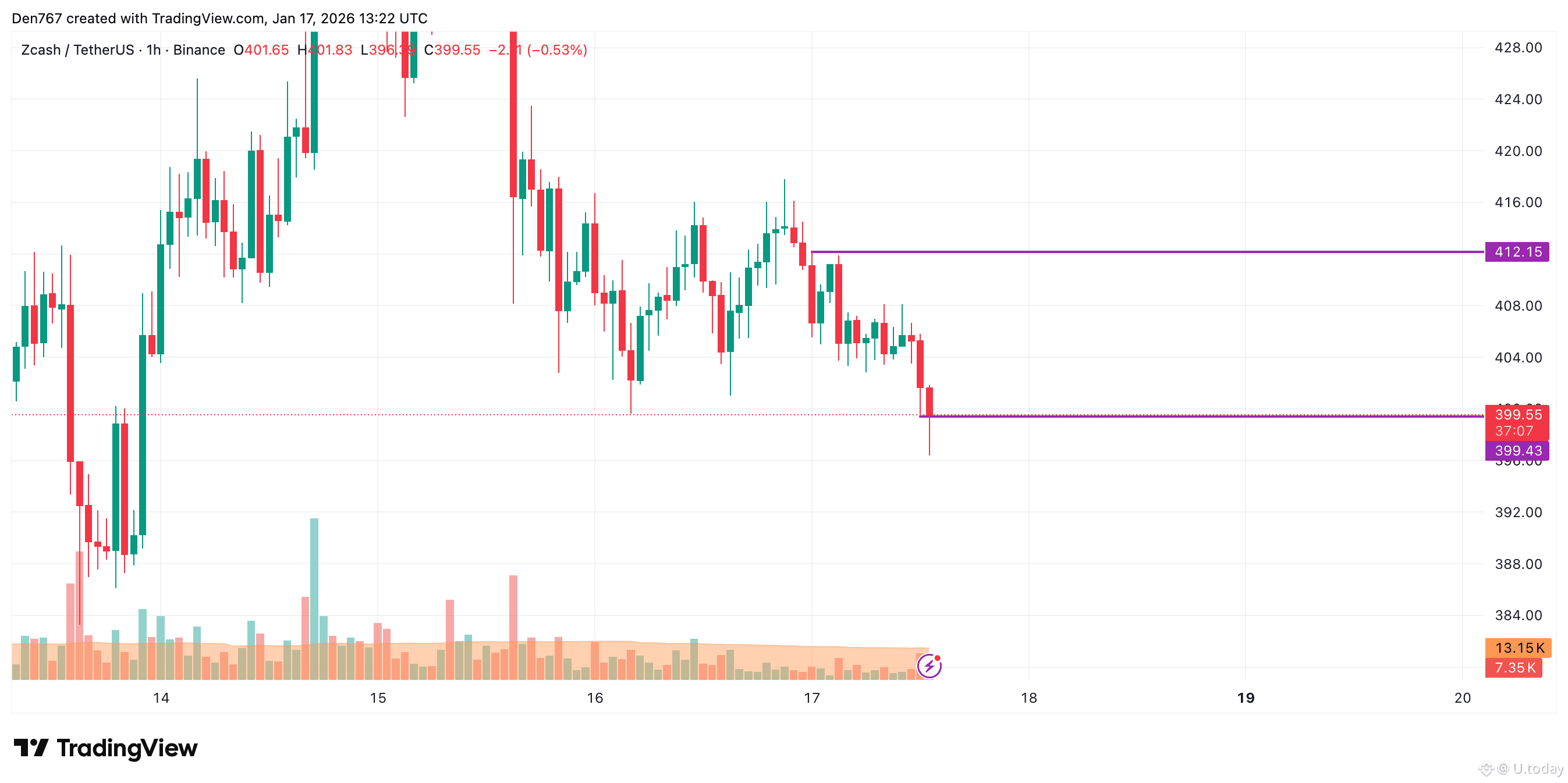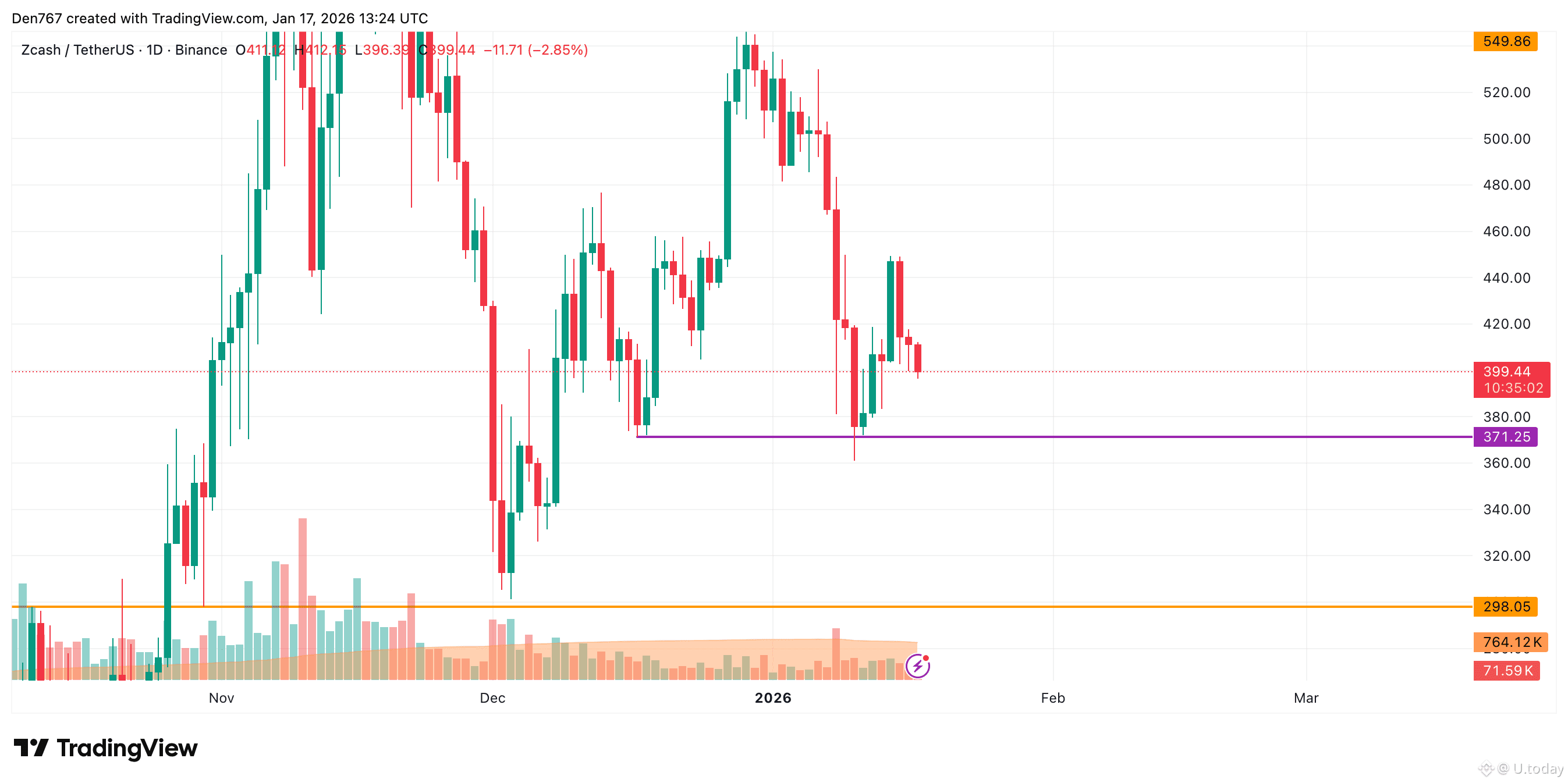 ZEC is trading at $399.52 at press time.