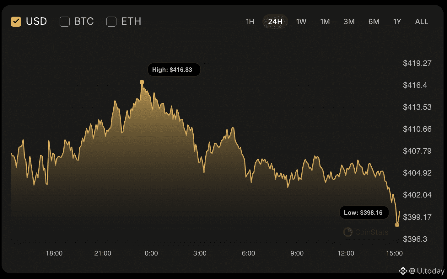 On the bigger time frame, there are no reversal signals yet. If the daily candle closes around the current prices or below, traders may witness a test of the $370-$380 range over the next few days.