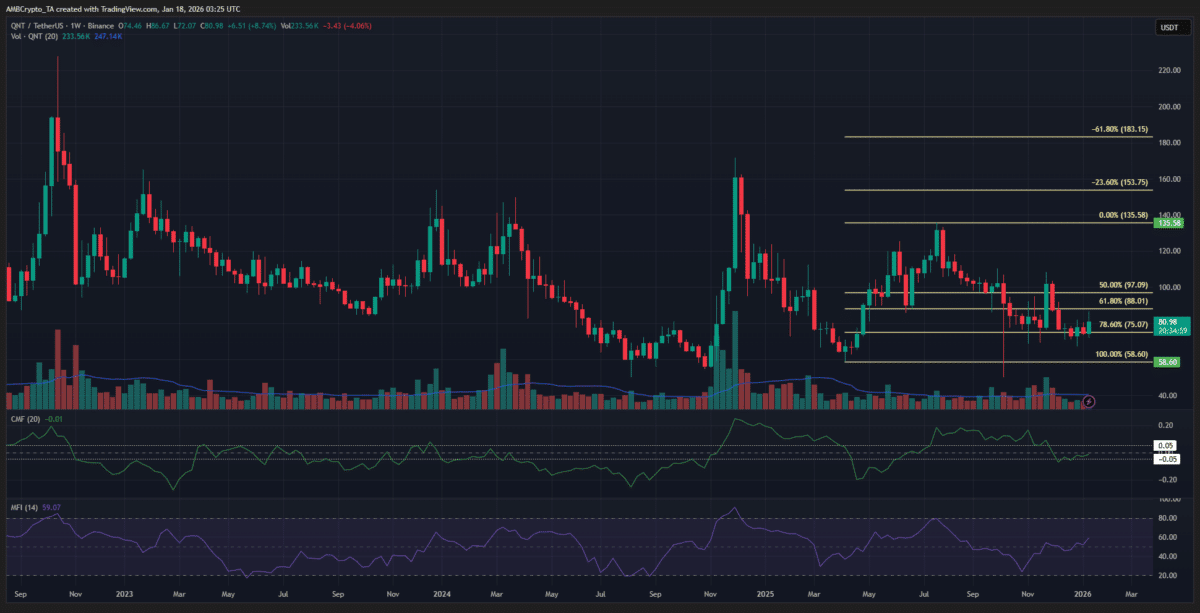 🧠 Para los poseedores de QNT a largo plazo, la cautela sigue siendo necesaria.