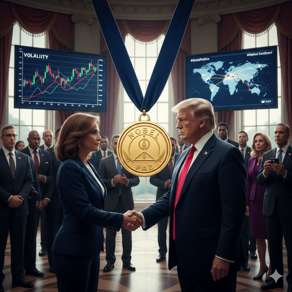 Durante una reciente reunión de alto nivel en Washington, la líder de la oposición venezolana María Corina Machado hizo un gesto que muchos interpretaron como profundamente simbólico en lugar de puramente ceremonial. Al ofrecerle su medalla del Premio Nobel de la Paz al ex presidente de EE. UU. Donald Trump, envió un mensaje que resonó más allá de la sala, encendiendo el debate en círculos políticos, diplomáticos y de mercado.