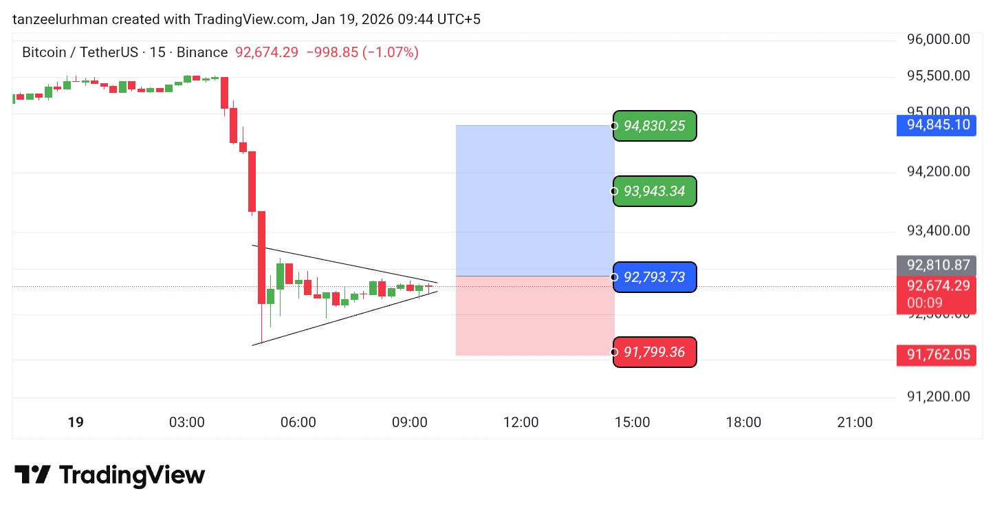 $BTC está actualmente moviéndose dentro de un patrón de banderín y si el mercado rompe este patrón, puedes entrar en una operación larga.