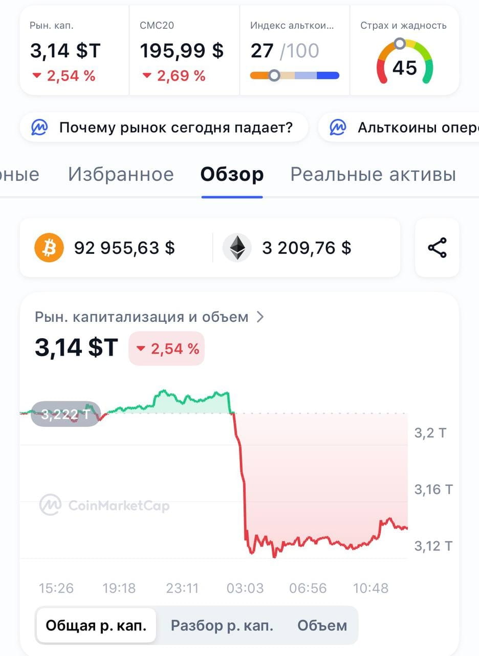 Capitalización total del mercado: Disminuyó un 2.92% (aproximadamente $100 mil millones) hasta $3.13 billones.