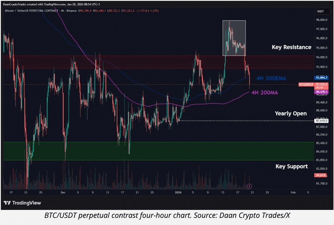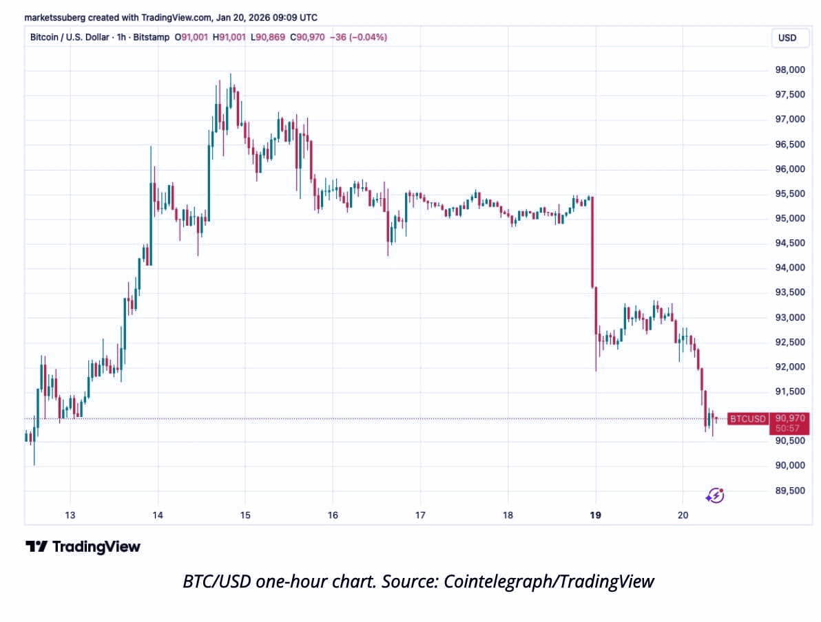 BTC cayó a mínimos de varios días cerca de $90,000 a medida que el sentimiento de riesgo global se debilitó y el precio volvió a su zona de consolidación de larga data. Los analistas dicen que el rechazo confirma que el impulso alcista ha desaparecido por ahora.