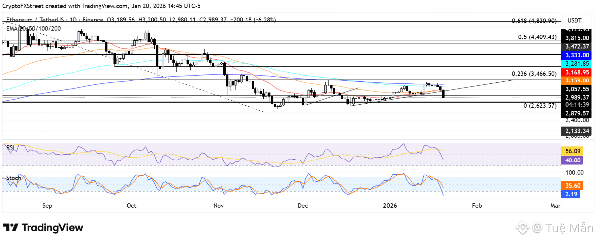 Không dừng lại ở đó, altcoin lớn nhất thị trường còn để tuột vùng hỗ trợ quan trọng tại 3.057 USD. Trong kịch bản ETH không sớm giành lại mốc này, áp lực bán có thể đẩy giá lùi về vùng then chốt quanh 2.880 USD.