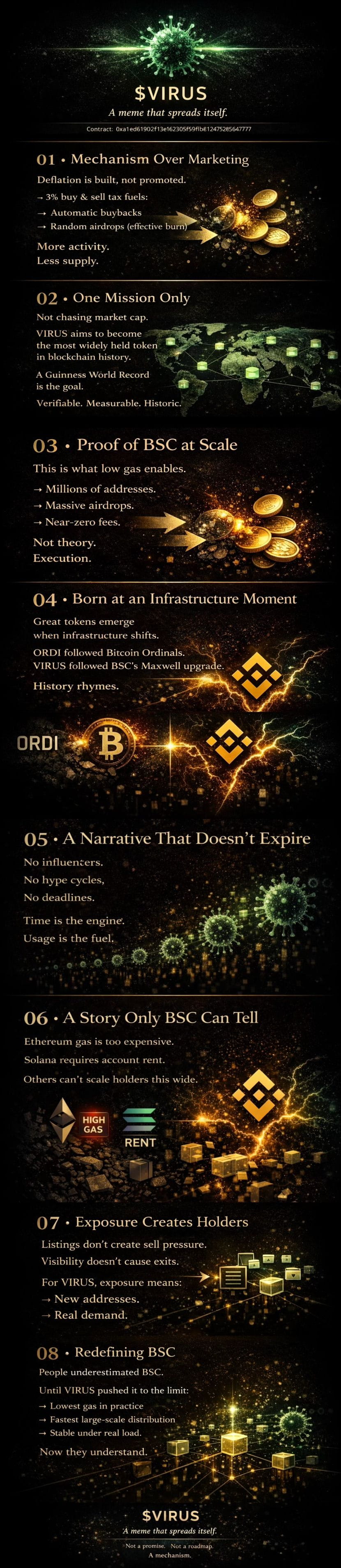 •VIRUS was born from BSC’s Maxwell hard fork, which drastically reduced gas costs