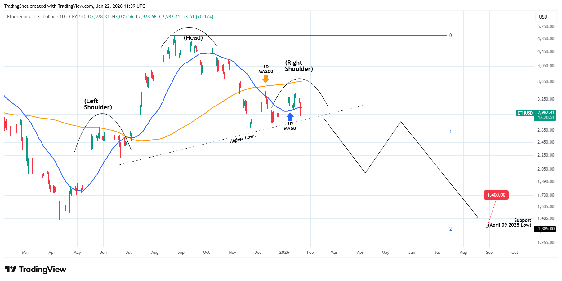 Ethereum (ETHUSD) ha estado formando actualmente el Hombro Derecho de un patrón de Cabeza y Hombros (H&S). Una formación técnicamente bajista, este Hombro Derecho está contenido por debajo de la MA200 de 1D (línea de tendencia naranja), que puede ser el último punto de prueba antes del rechazo y el inicio de la 2ª Etapa del Ciclo Bajista.