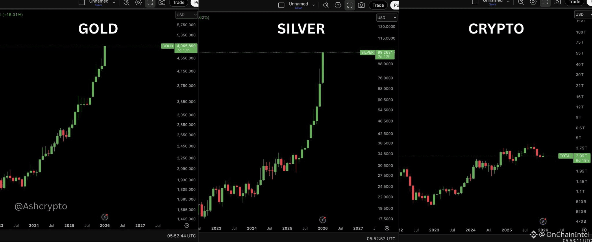 Metals have absorbed more capital than a whole digital asset class built on global, programmable, 24/7 technology.
