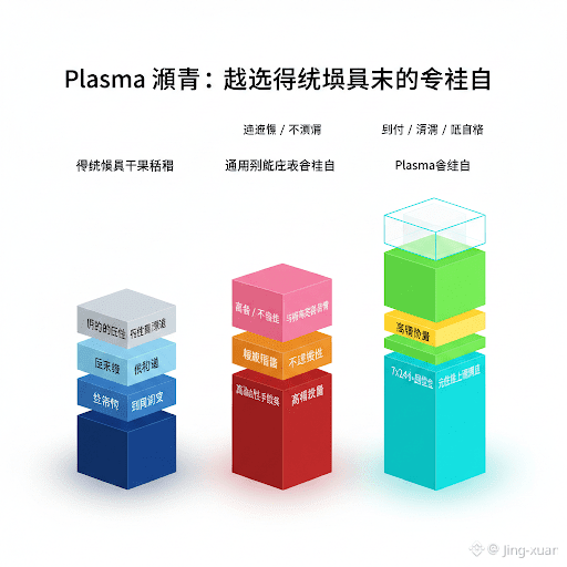 基于 Plasma 的稳定币则实现了 7×24 小时即时结算和完全的链上透明度。不存在赎回排队、不存在净值(NAV)计算滞后,也不存在隐藏风险敞口。每一笔转账都是最终的、可审计的,并且可以实时验证。风险不会隐藏在报告周期之间,而是持续可见。