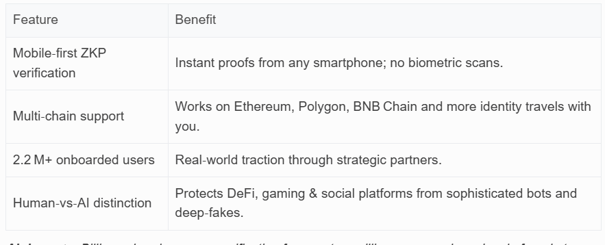 Verificación no invasiva – Sin escaneos de iris ni billeteras de hardware; solo una prueba criptográfica.