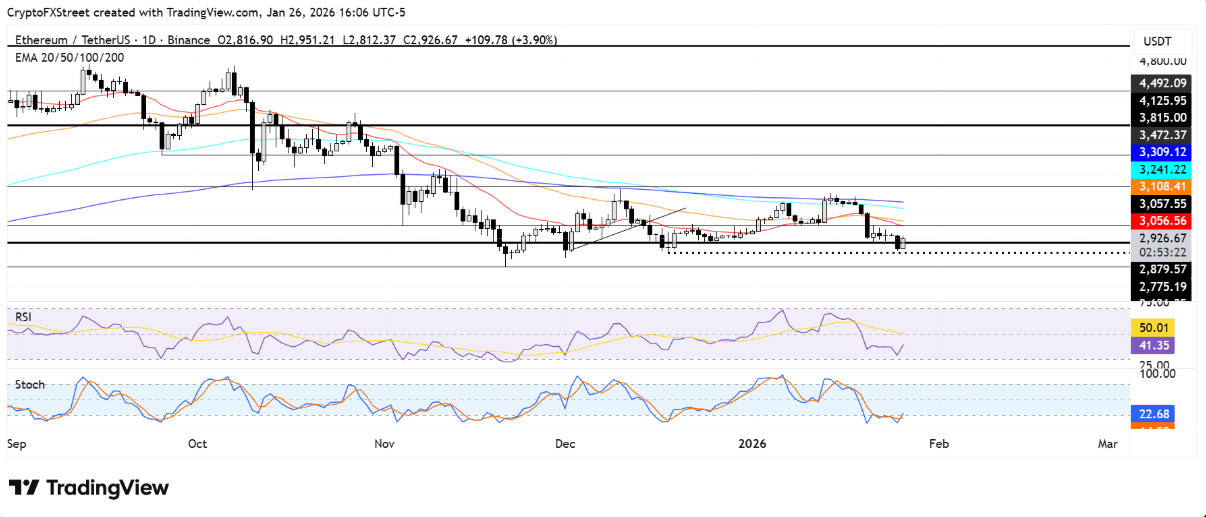 Después de un ajuste brusco durante el fin de semana, ETH ha rebotado desde la zona de soporte de 2775 dólares y actualmente se mantiene por encima de 2880 dólares. Si la tendencia alcista continúa, la segunda criptomoneda más grande del mercado podría desafiar pronto la zona de resistencia cerca de 3058 dólares, que coincide con la zona de convergencia de la media móvil exponencial (EMA) de 20 días.