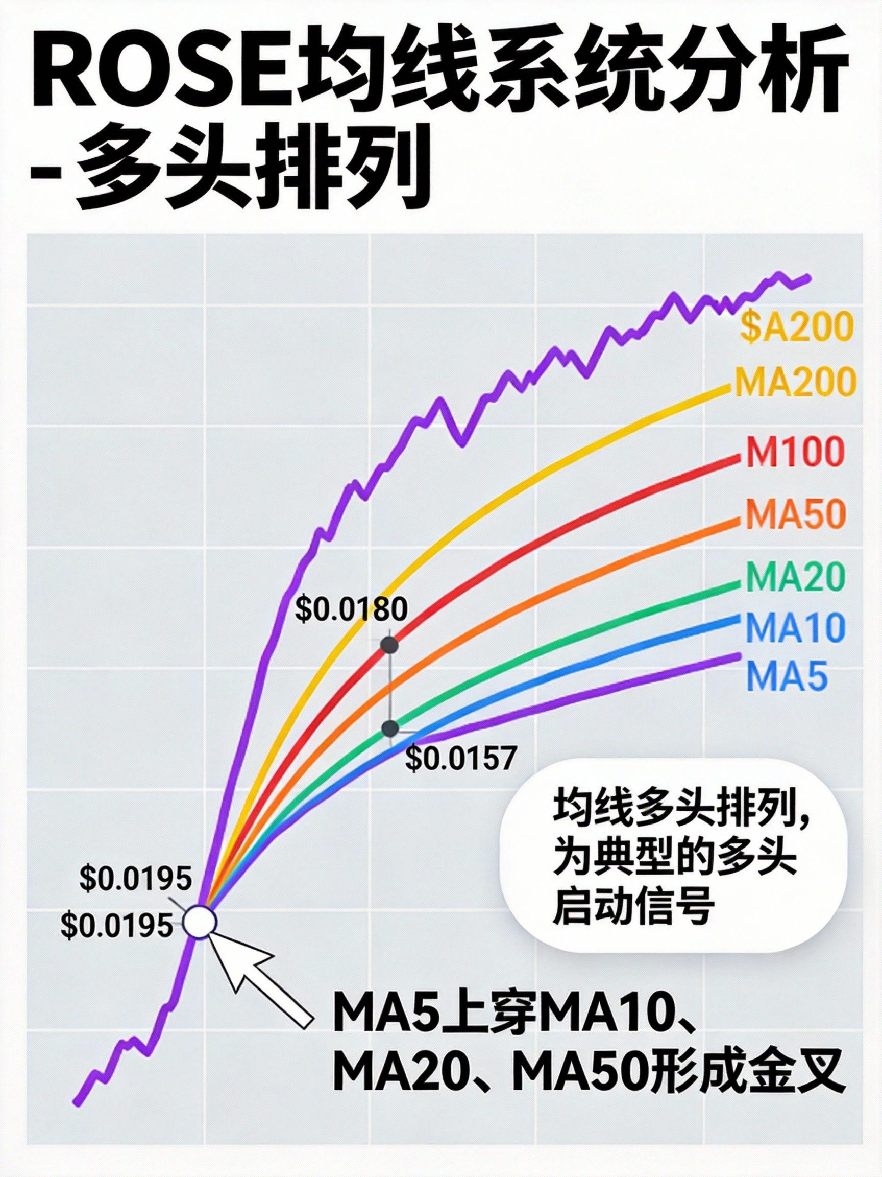 $ROSE hoy subió gracias al soporte técnico, datos en cadena y fundamentos. Cruce dorado de MACD, RSI saludable, alineación alcista de medias móviles, aumento de direcciones con monedas, alta popularidad de narrativas de IA: estos factores han creado cierta resonancia.
