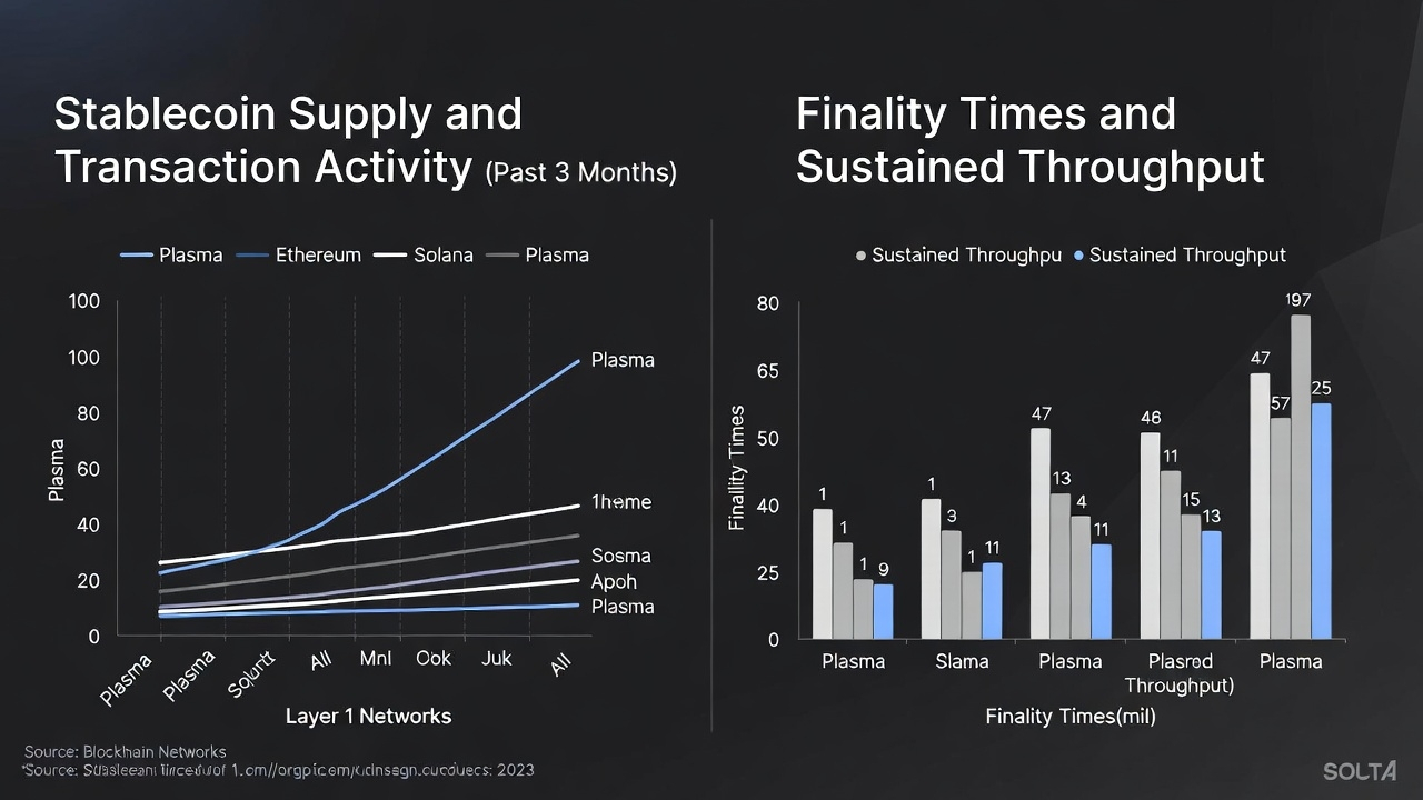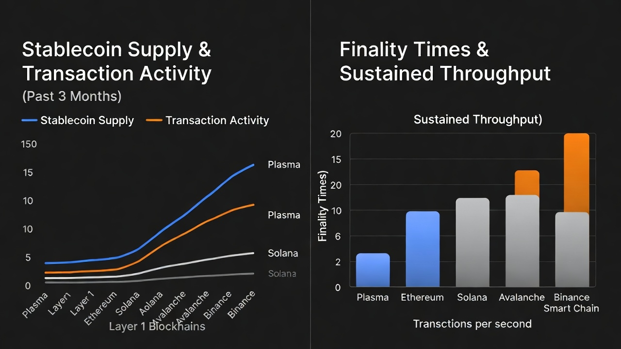 El segundo compara los tiempos de finalización y el rendimiento sostenido a través de redes líderes. Las confirmaciones de Plasma en menos de un segundo y su capacidad para manejar miles de transacciones por segundo sin congestión lo colocan en una posición fuerte para cualquier cosa que necesite sentirse como un movimiento instantáneo de dinero: remesas, pagos a comerciantes, nómina en cadena o flujos institucionales.