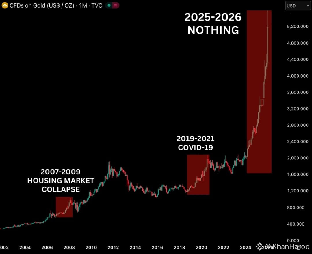 2025-2026 (The Current Cycle): Gold has moved from $2,060 to an astonishing $5,520.