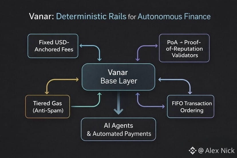 Instead of treating blockspace like an auction, Vanar pushes toward determinism. The network uses a fixed fee structure designed to keep transaction costs stable in real world terms rather than floating with token price volatility. I see this as one of the most underrated design choices in crypto. Businesses and automated systems need cost predictability more than raw cheapness. Knowing what something will cost tomorrow is often more important than paying slightly less today.