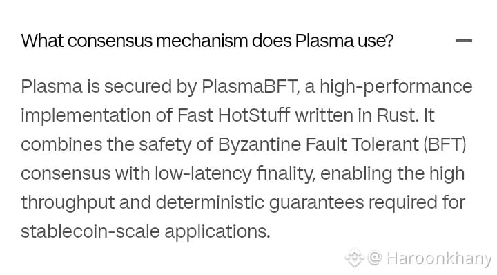 Cuando las personas hablan del rendimiento de la blockchain, el consenso es un término que se menciona con frecuencia pero nunca se describe realmente. Sin embargo, en el contexto de una red que busca respaldar stablecoins y transacciones financieras, el consenso es la diferencia entre el principio y la usabilidad real. Plasma tiene un conjunto de reglas de consenso llamado PlasmaBFT, que ha sido diseñado con un único objetivo en mente: proporcionar un rendimiento sólido en entornos económicos reales.