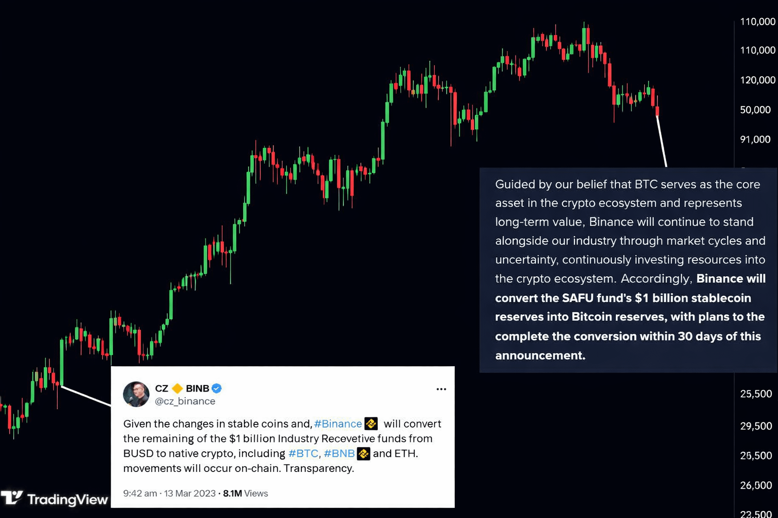 Ở thời điểm hiện tại, Binance tiếp tục thông báo chuyển đổi Quỹ SAFU trị giá 1 tỷ USD sang Bitcoin.