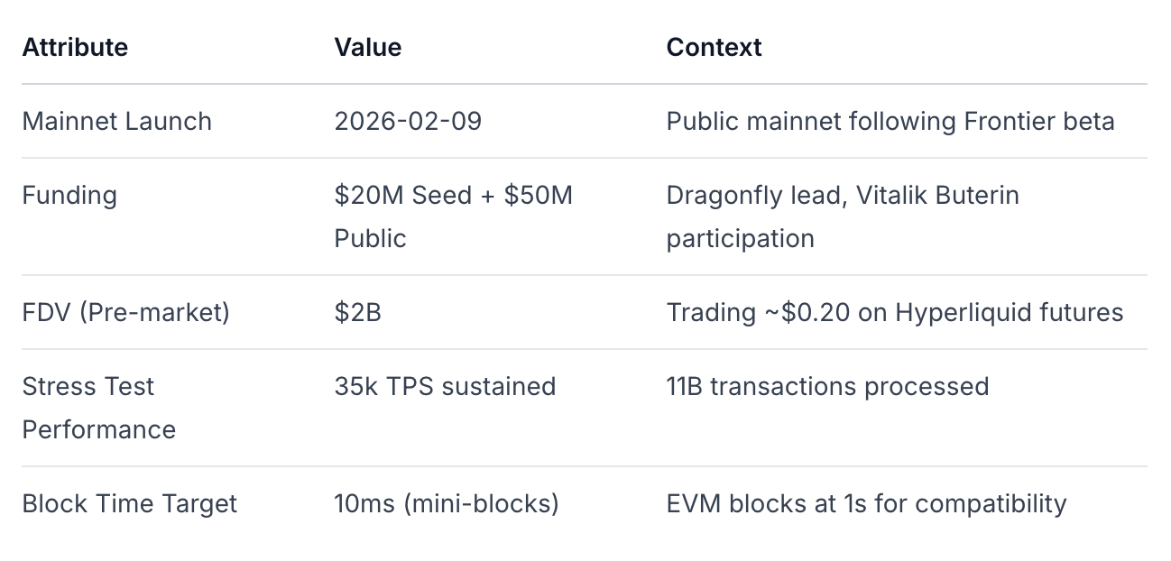 MegaETH es una blockchain de Capa 2 compatible con EVM arquitectada específicamente para aplicaciones en tiempo real, apuntando a tiempos de bloque de menos de 10 ms y un rendimiento de más de 100,000 TPS. El protocolo lanzará su red principal pública el 9 de febrero de 2026, tras una exitosa prueba de estrés que procesó 11 mil millones de transacciones a una tasa sostenida de 15-35k TPS. Bankless