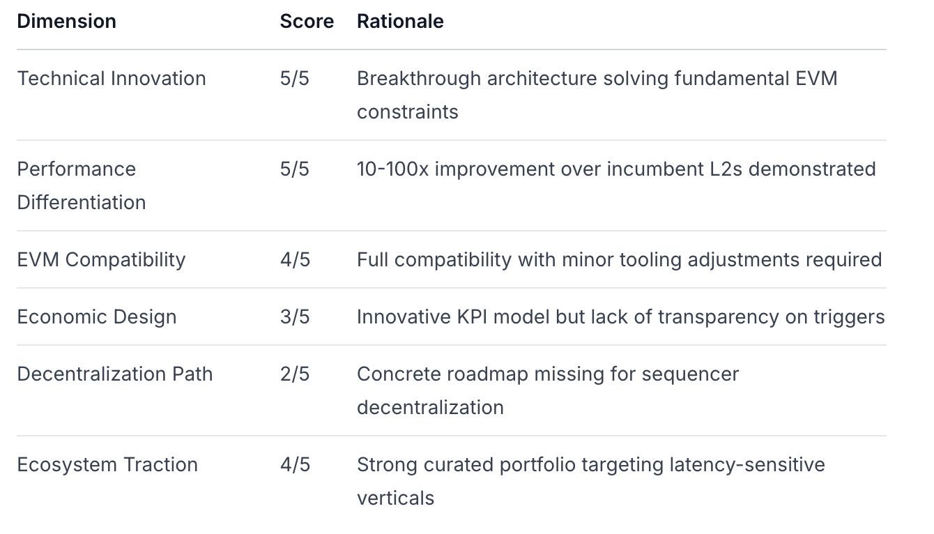 Veredicto: Invertir con hitos progresivos basados en el progreso de descentralización. Los logros técnicos de MegaETH justifican la inversión al actual FDV de $2B, pero la inversión continua deberá estar condicionada a la entrega de los hitos de descentralización prometidos y a una tokenómica transparente. El protocolo representa el avance más significativo en el rendimiento de ejecución de EVM desde los primeros avances de rollup, desbloqueando potencialmente nuevas categorías de aplicaciones para Ethereum.