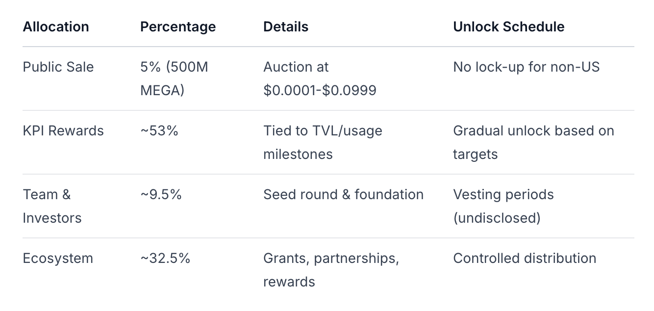 MegaETH emplea una distribución estructurada de tokens con una asignación significativa a incentivos basados en el rendimiento: