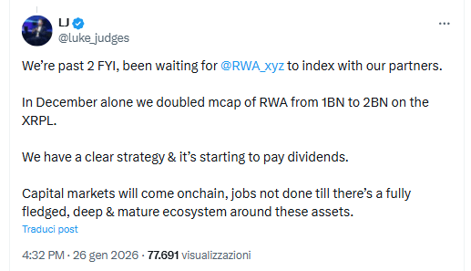 Sin embargo, Luke Judges de Ripple reveló que la cifra ya se había duplicado a $2 mil millones. Judges enfatizó que la discrepancia provino de un retraso por parte de RWA.xyz para indexar el valor aportado por sus socios. Según ella, su equipo tiene una estrategia clara, que ahora comienza a dar sus frutos.