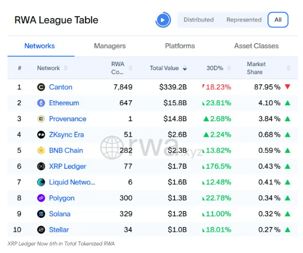\u003cc-95/\u003eEl XRP Ledger se ha convertido ahora en la cuarta blockchain más grande en términos de valor de RWA tokenizados representados, superando a los gigantes Ethereum y Polygon.