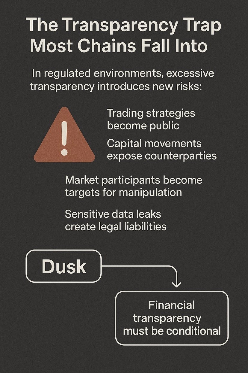 La cultura cripto a menudo trata la transparencia como un bien absoluto. Más visibilidad equivale a más confianza. Pero en entornos regulados, la transparencia excesiva introduce nuevos riesgos: