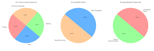 El protocolo está construido sobre la blockchain Sui, que enfatiza la escalabilidad a través de la ejecución paralela y un alto rendimiento. Desde el punto de vista de la estructura del mercado, esto es crítico. A medida que la actividad en cadena se expande a través del comercio, NFTs, juegos y cargas de trabajo impulsadas por IA, el almacenamiento de datos se convierte cada vez más en un factor limitante. Walrus se posiciona como un reemplazo descentralizado para los proveedores de nube centralizados, ofreciendo compatibilidad nativa con blockchain en lugar de depender de APIs fuera de la cadena o servicios externos.