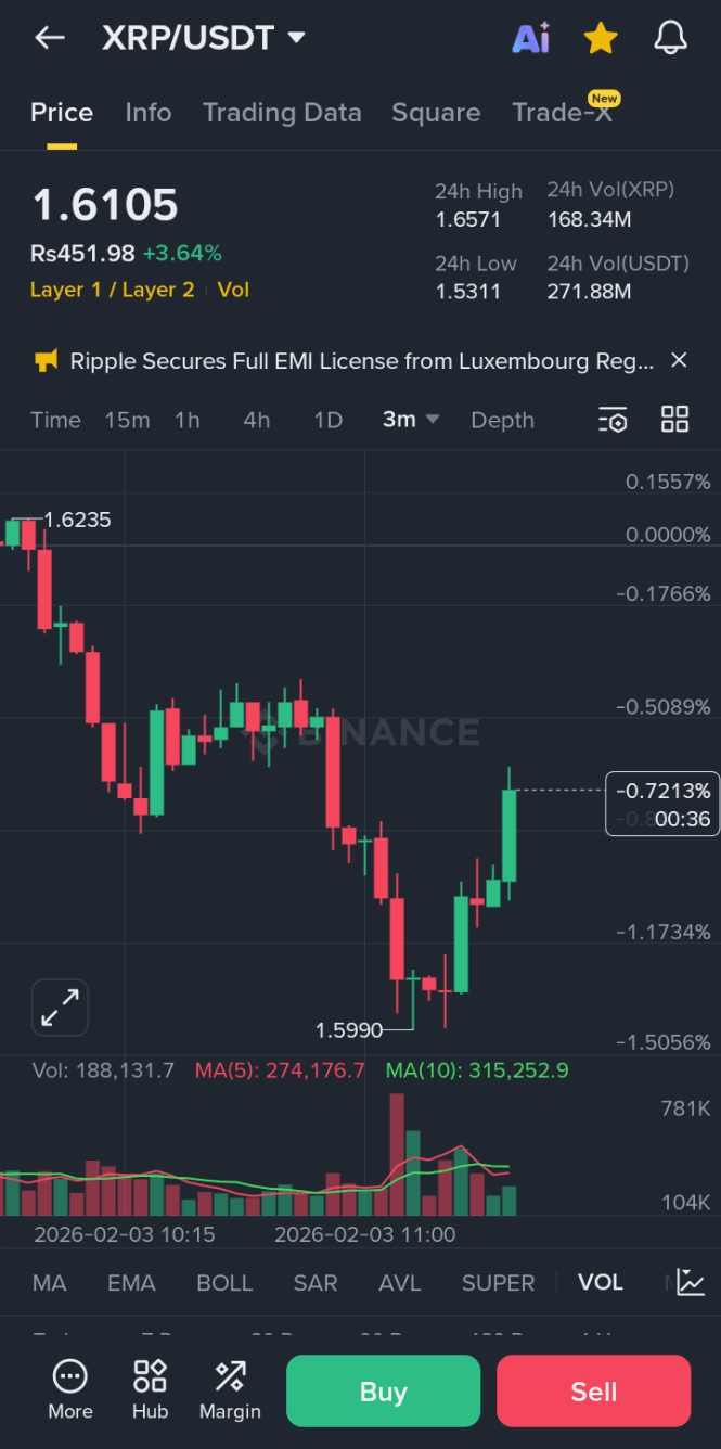 XRP#BinanceBitcoinSAFUFund ha rebotado recientemente después de una caída, actualmente cotizando alrededor de $1.6105. A pesar de una recuperación a corto plazo, la tendencia general sigue siendo bajista. Esté atento a la resistencia alrededor de $1.6180 y el soporte cerca de $1.5990. Mantenga un ojo en
