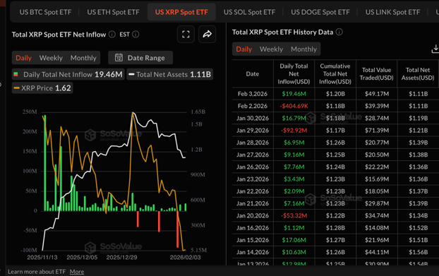 XRP se estabiliza en medio de señales mixtas con la reanudación de los flujos de fondos cotizados en bolsa ETF a pesar de la disminución de la actividad comercial minorista.