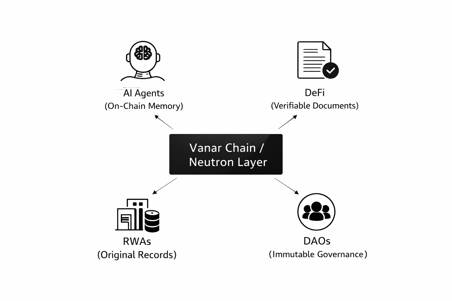 Vanar’s data-centric architecture opens several practical applications. AI agents can maintain persistent, verifiable memory on-chain. DeFi applications can attach auditable documents and records directly to financial contracts. Tokenized real-world assets can embed original legal or technical documents on-chain rather than relying on external references. DAOs can preserve immutable governance records—proposals, discussions, and decisions—without dependence on third-party storage. In each case, the underlying benefit is the same: reducing external dependencies while strengthening trust guarantees.