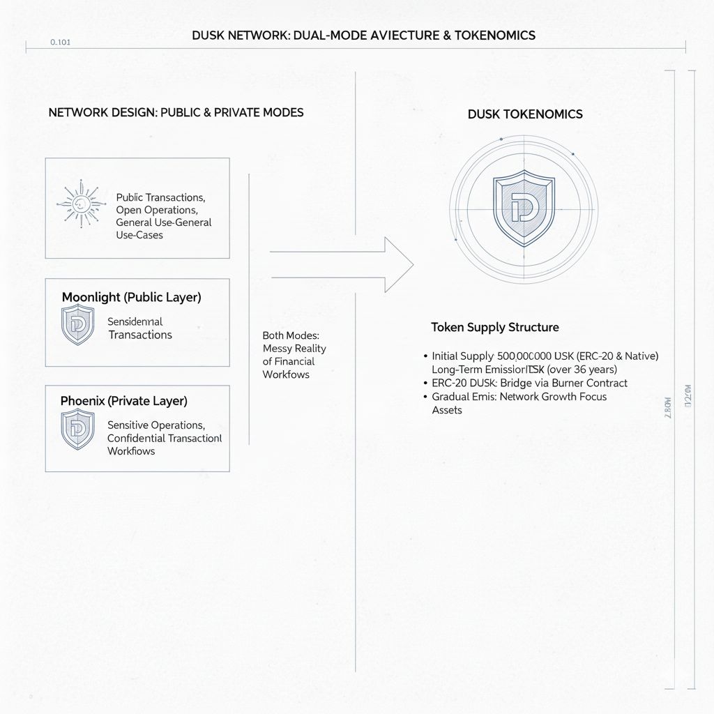 También hay un ángulo práctico en el diseño de la red que se manifiesta en cómo Dusk habla sobre modos públicos y privados, porque el mensaje actualizado del libro blanco introduce a Moonlight como una capa de transacción pública junto a Phoenix, y aunque eso pueda sonar como un simple complemento, en realidad señala algo significativo, ya que los sistemas reales generalmente necesitan tanto rieles orientados al público para algunas operaciones como rieles privados para operaciones sensibles, y una cadena que puede soportar ambos modos sin romper su identidad tiene una mejor oportunidad de encajar en la realidad desordenada de los flujos de trabajo financieros.