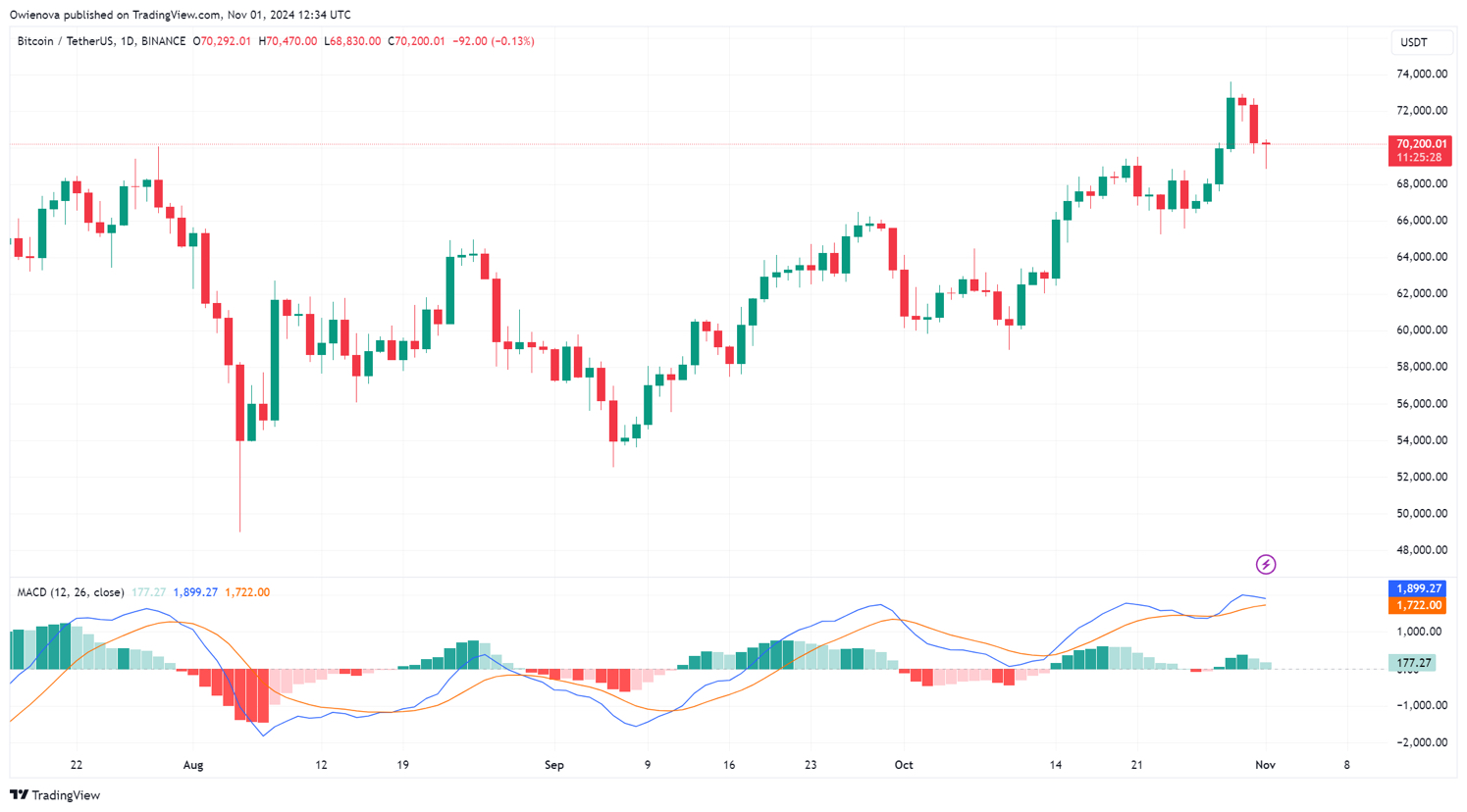 Malgré le fort optimisme autour de BTC, l'actif crypto est tombé au seuil de 69 000 $, montrant des signes d'un déclin prolongé. Étant donné que cette chute survient après une semaine de mouvements à la hausse, elle a suscité des spéculations sur son potentiel à court terme.