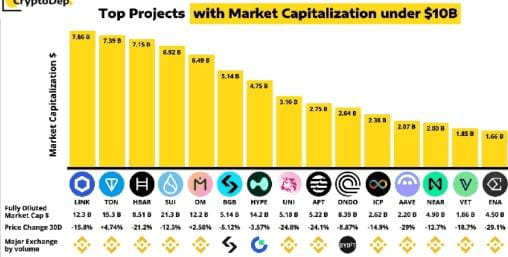 Les altcoins comme LINK (7,8 milliards de dollars), TON (7,3 milliards de dollars), SUI (6,9 milliards de dollars) et même HBAR avec une baisse de -21 % se préparent à quelque chose de grand. Ajoutez des outsiders comme BGB, HYPE, ONDO et ENA — et vous avez une liste de surveillance diversifiée et à forte conviction.