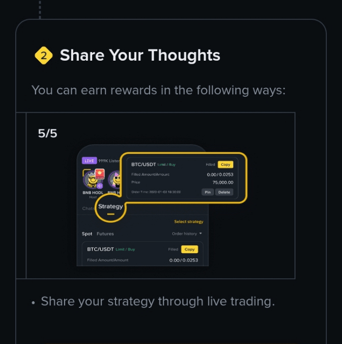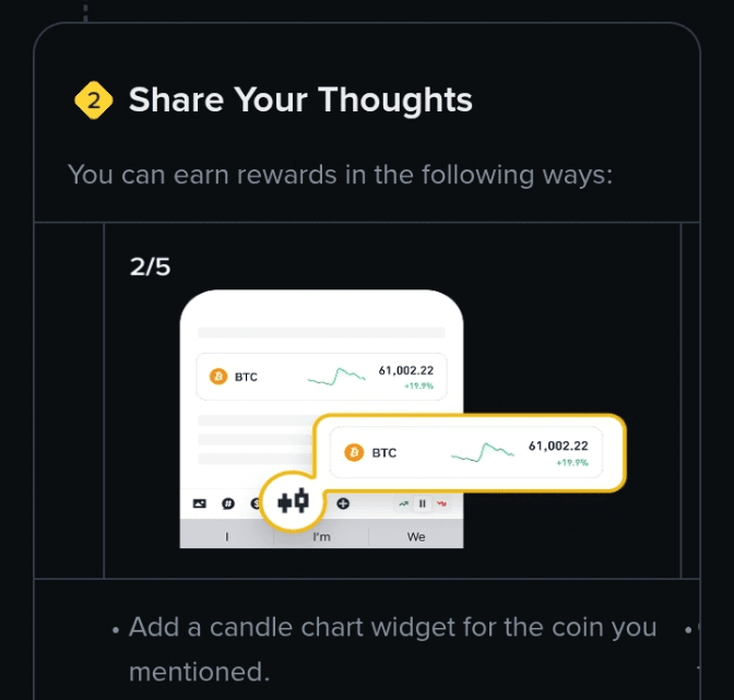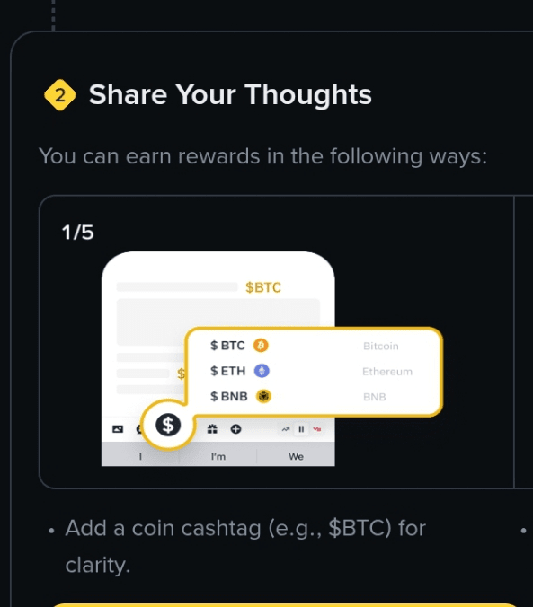 Commencez à créer des posts, vidéos ou sondages — incluez des cashtags comme $BNB ou $SOL