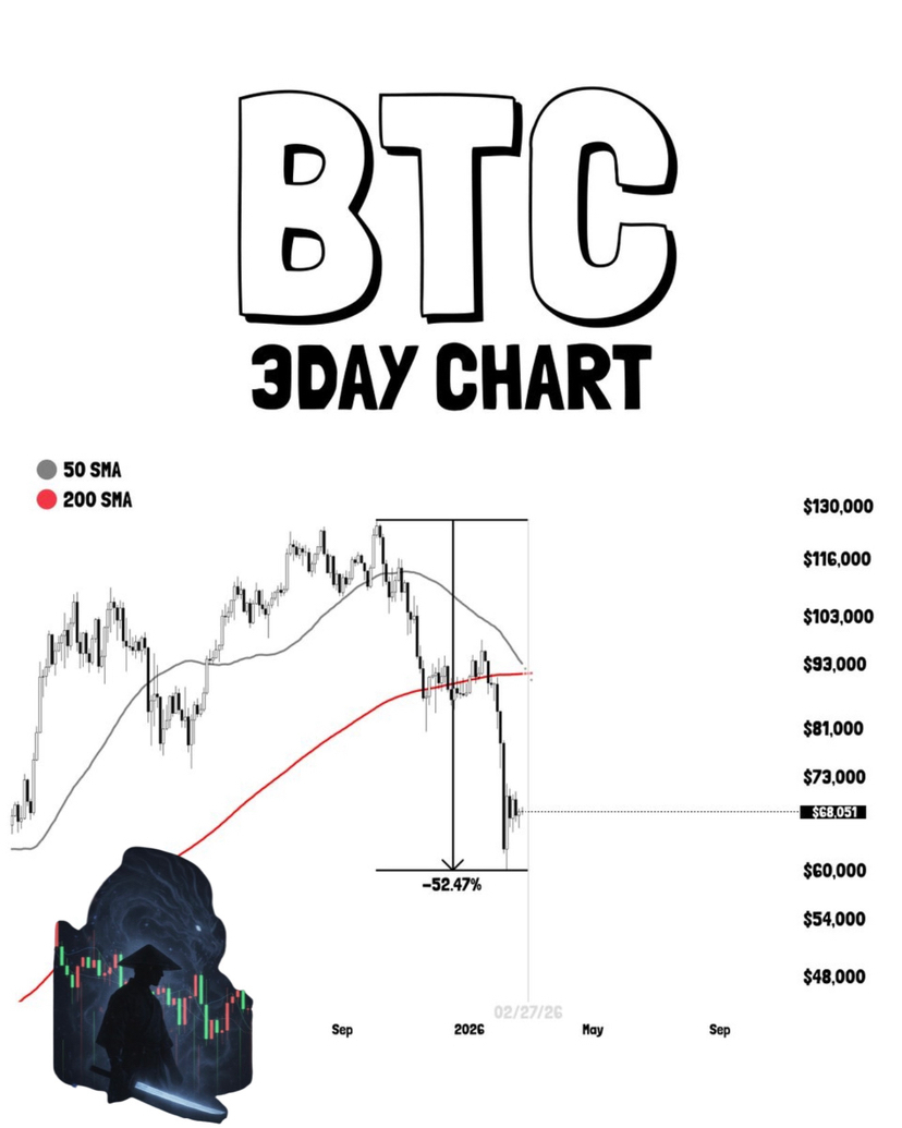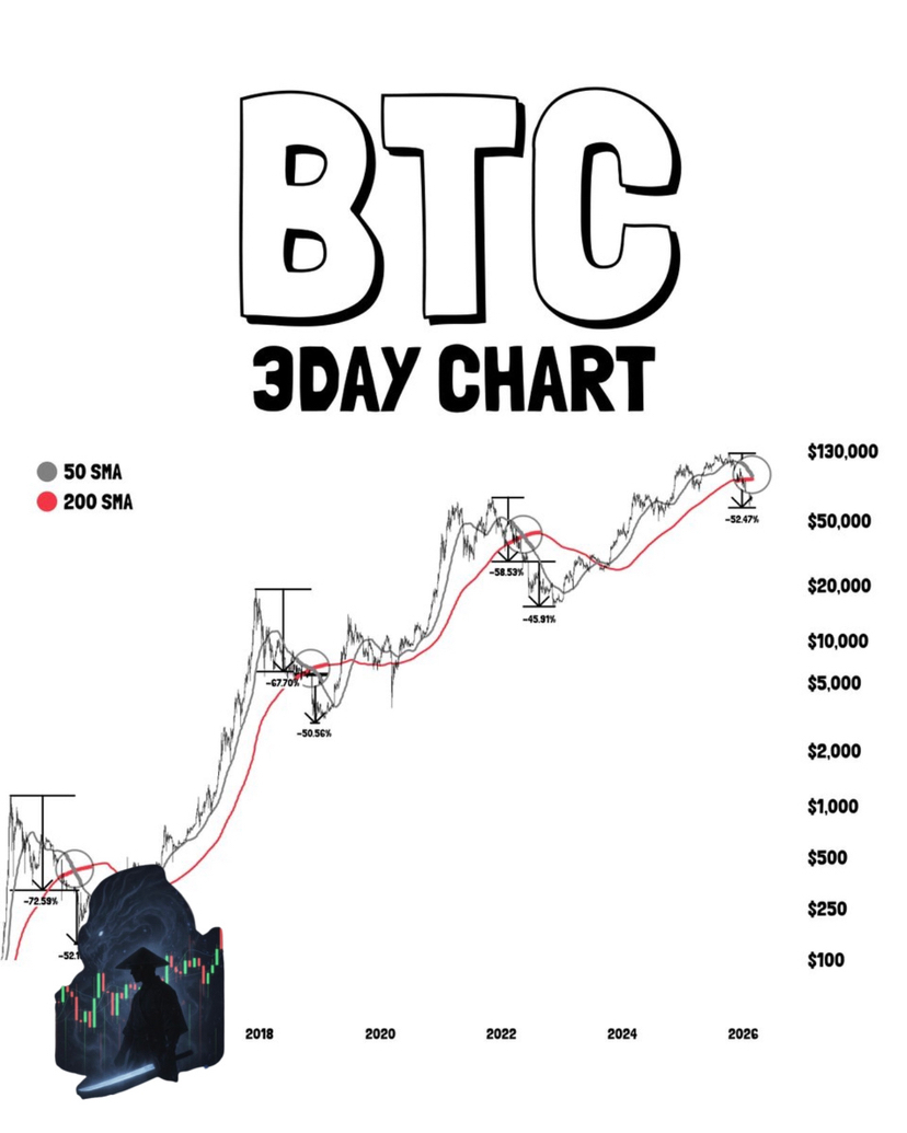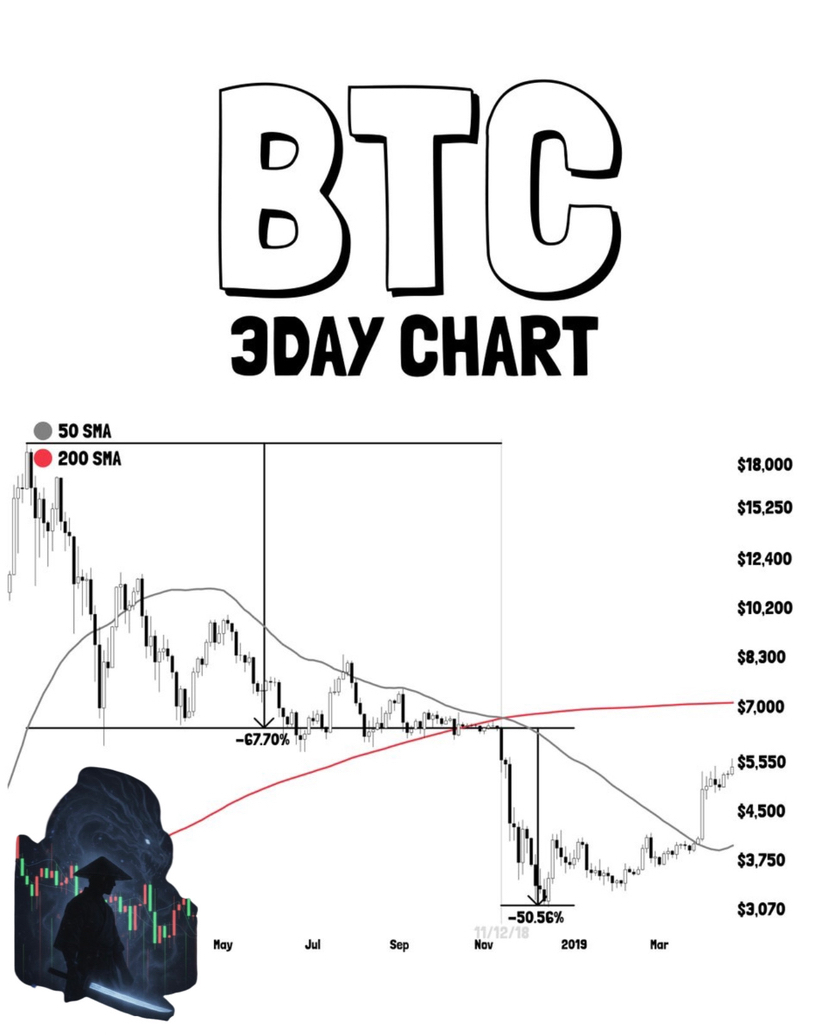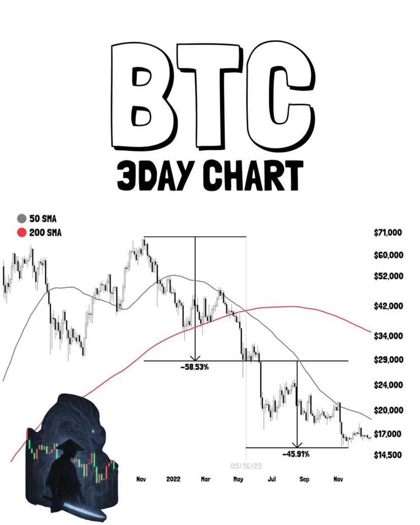 Le BTC avait déjà chuté de plus de 72% avant que la croix de la mort n'apparaisse.