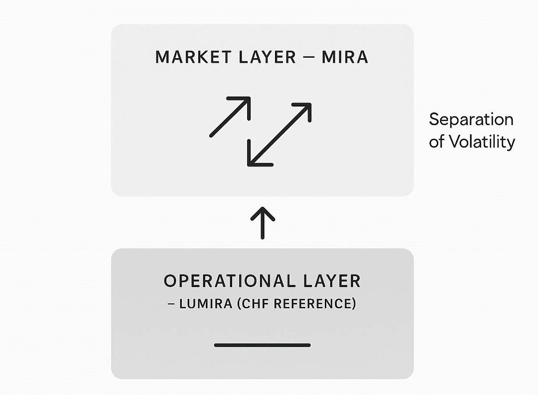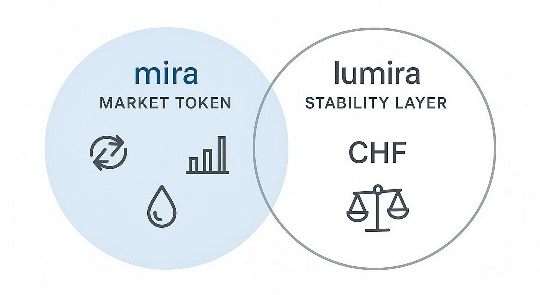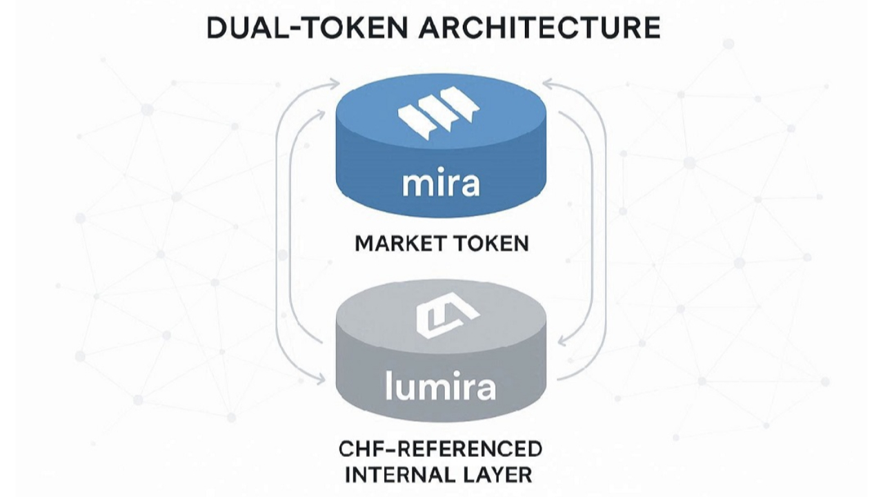 Instead of concentrating all economic pressure into one token, it separates functions between two: MIRA and Lumira.