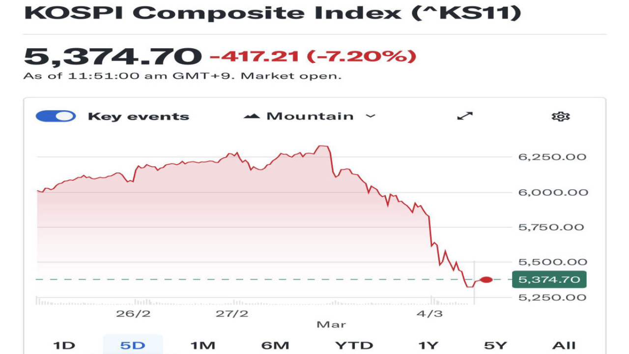 Le KOSPI vient de perdre 15 % en 48 heures. Les disjoncteurs ont été déclenchés pour la première fois en 576 jours. 270 milliards de dollars se sont évaporés en une seule session. Samsung en baisse de 10 %. SK Hynix en baisse de 12 %. Le marché boursier le plus chaud du monde est passé de sommets historiques supérieurs à 6 300 à une chute libre en dessous de 5 300 en deux jours de négociation.