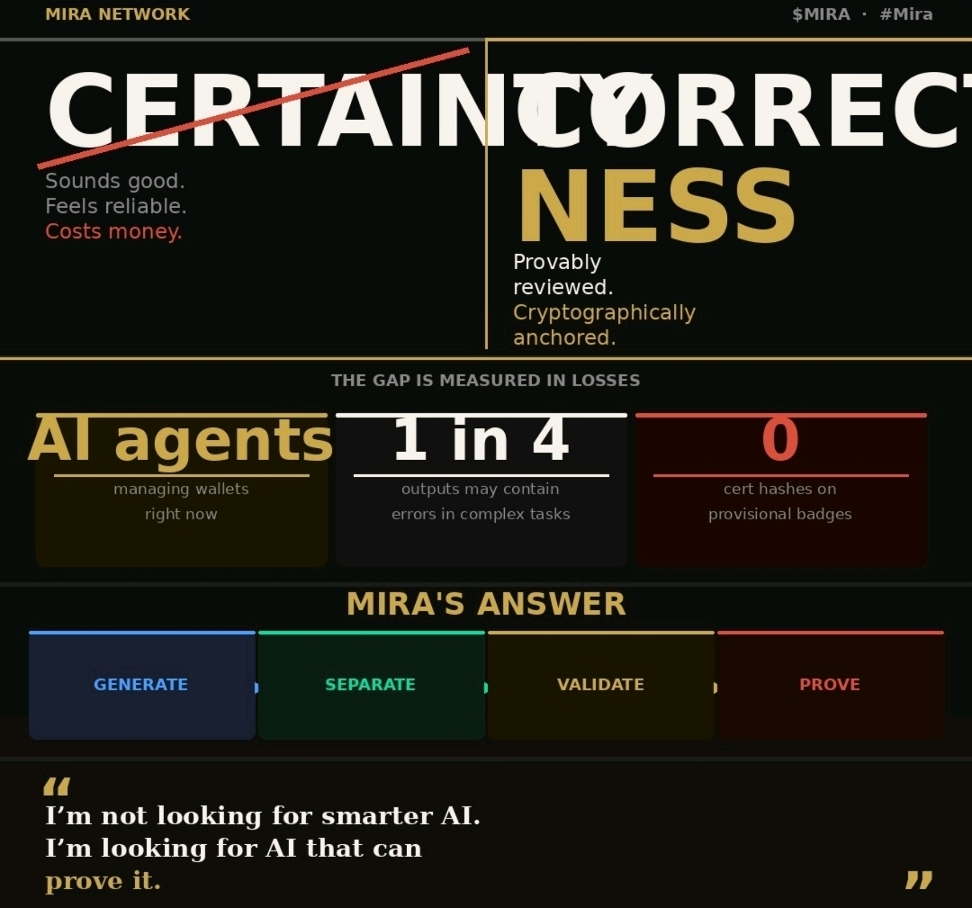 Pour moi, $MIRA ne concerne pas la construction d'une IA plus intelligente. Il s'agit de construire une IA qui peut résister à l'examen. Qui peut être contestée. Qui peut être auditée. L'intelligence seule accroît le risque. L'intelligence vérifiée accroît la confiance.