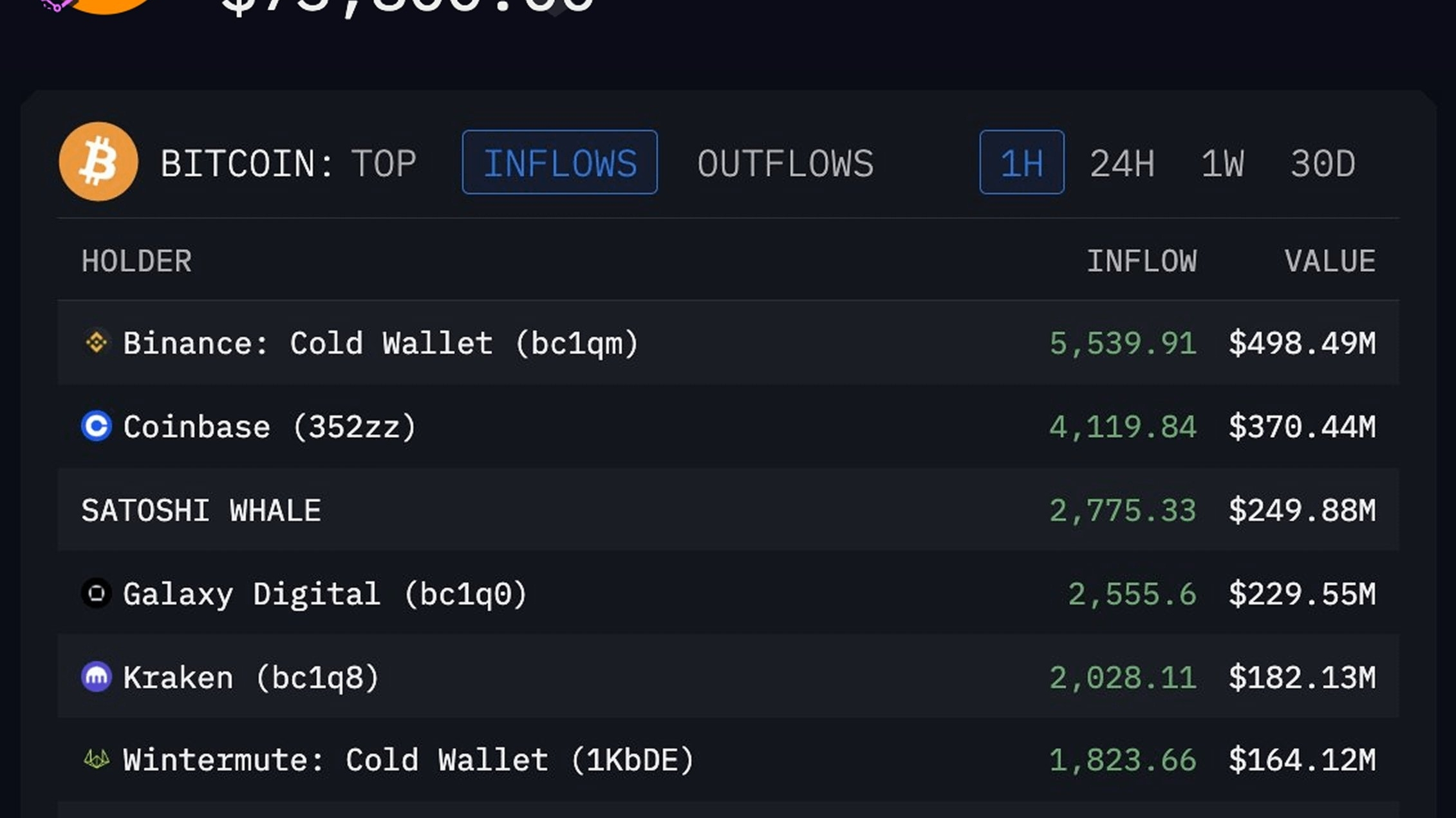 | 🟡 Binance (portefeuille froid) | 5,539 BTC | 498,49 millions de $ |