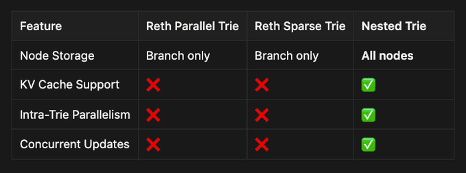 • Trie imbriqué → nouvelle merklisation, 3–10× plus rapide