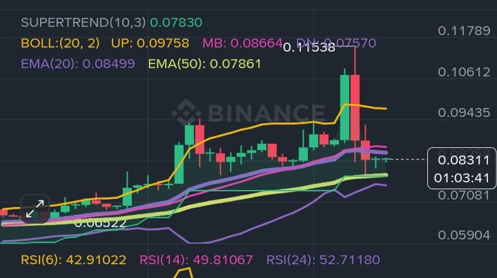 Le marché restera probablement dans une phase de fluctuation entre 0.080 et 0.086 jusqu'à ce que la liquidité suffisante soit rassemblée pour le prochain mouvement.