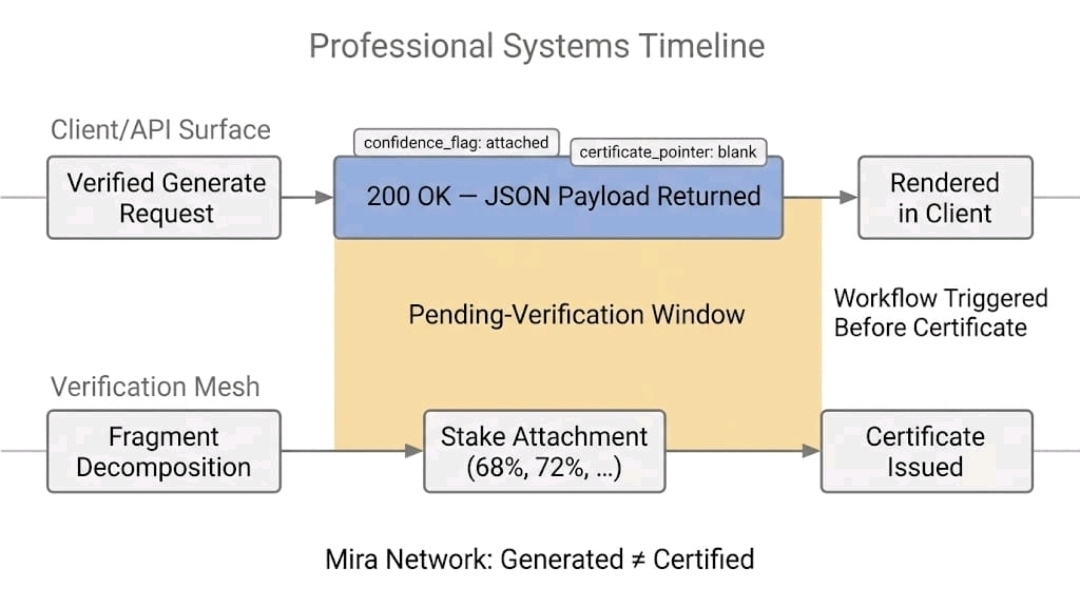 My backend sent a request to the Verified Generate endpoint like it always does. Payload out. Connection open. Somewhere inside the network the response was already being split into claims and pushed toward validators I’ll never actually see.